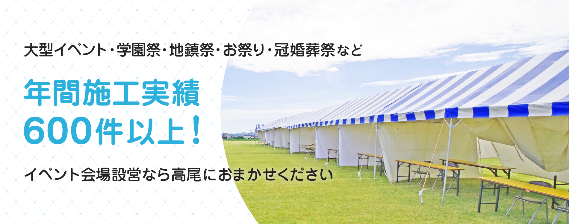 葬儀の外装設備や各種イベントのブースづくり、地鎮祭でのテント設営などを行っております。
