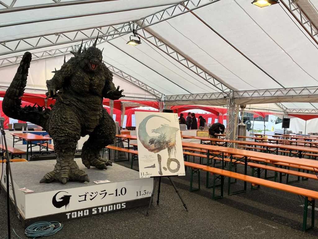 テント内には映画のキャラクターを設置し、テント内照明は暖色でご用意しました。