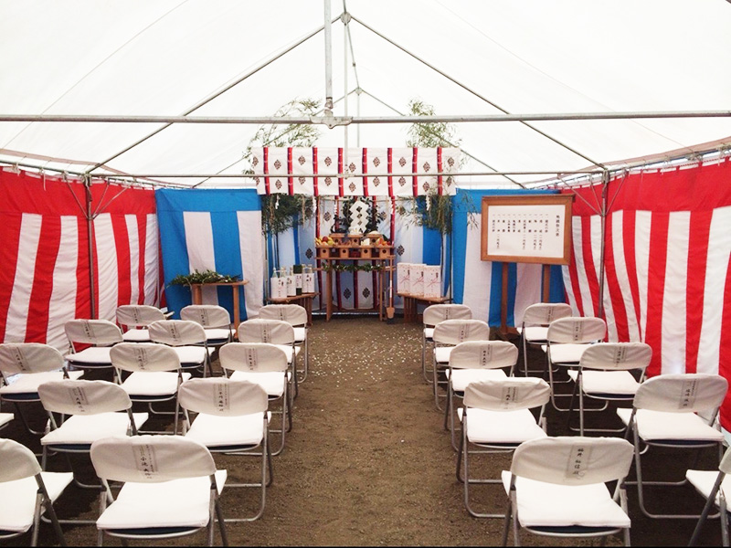 地鎮祭とは、建築工事を始める前に、その土地の神様に対して工事の安全を祈願する儀式です。