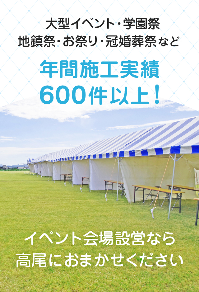 葬儀の外装設備や各種イベントのブースづくり、地鎮祭でのテント設営などを行っております。